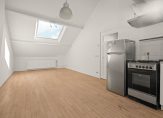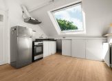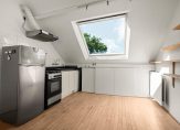 Het appartement heeft een fijne hoogte en meerdere dakramen voor extra licht en ventilatie. Aan de voorzijde kijk je leuk over de Roukensstraat. Het appartement heeft in de woonkamer een open keuken met apparatuur. Het appartement heeft verder een slaapkamer aan de achterzijde en een badkamer met ligbad, vaste wastafel, een toilet, een doucheruimte en de aansluitingen voor de wasmachine.