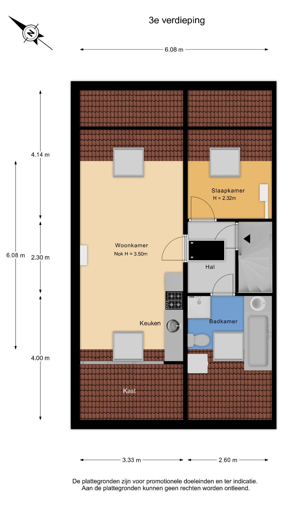 – De woning beschikt over een eigen trapopgang van de tweede naar de derde verdieping. Deze trapopgang telt ca. 4 m2, welke opgeteld zijn bij het woonoppervlak;