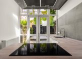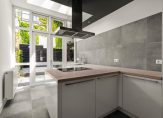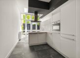 De woonkamer bestaat uit een voor en middengedeelte. Deze wordt gescheiden door een prachtige en-suite met schuifdeuren. Het plafond is maar liefst 3,13 meter hoog! De breedte maat is bijna 4 meter en de hele diepte maat maar liefst 17 meter. Hierdoor heb je in combinatie met de hoogte een super ruimte. De indeling is naar eigen smaak in te richten door deze afmetingen. De vloer is afgewerkt met een mooie parketvloer. De open keuken ligt aan de achterzijde en heeft alle denkbare apparatuur. Het heeft een kookeiland met een inductiekookplaat, een vaatwasser, een koel-vriescombinatie, combi-oven en een afzuigkap die naar buiten gaat. Een pluspunt van deze ruimte is dat er een drietal dakramen liggen waardoor je veel licht krijgt in de keuken.