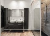 De slaapkamer ligt aan de achterzijde van de benedenwoning. De slaapkamer bereik je via de lux badkamer. De slaapkamer heeft twee ramen aan de tuinzijde en kent een fijn formaat. Voor extra opslag zou je een mooie kast om de deur van de slaapkamer kunnen bouwen. Met deze investering benut je de ruimte optimaal.