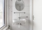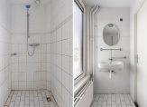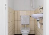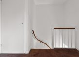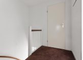 Overloop met drie slaapkamers en een vaste kast. De badkamer is eenvoudig en heeft een douche en een vaste wastafel.