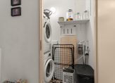 Overloop met wasruimte en een aparte stookruimte. Op de verdieping zijn drie slaapkamers gelegen waarvan er een aan de voorzijde met vaste inbouwkast. De andere twee slaapkamers liggen aan de achterzijde. De badkamer heeft een inloopdouche en een vaste wastafel.