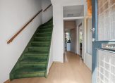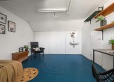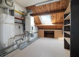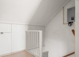 Vaste trap naar de tweede verdieping / overloop met dakraam, wasmachineaansluiting, mechanisch ventilatiesysteem, cv-ketel en veel bergruimte / grote slaapkamer met een dakkapel, vaste wastafel en eveneens bergruimte.