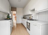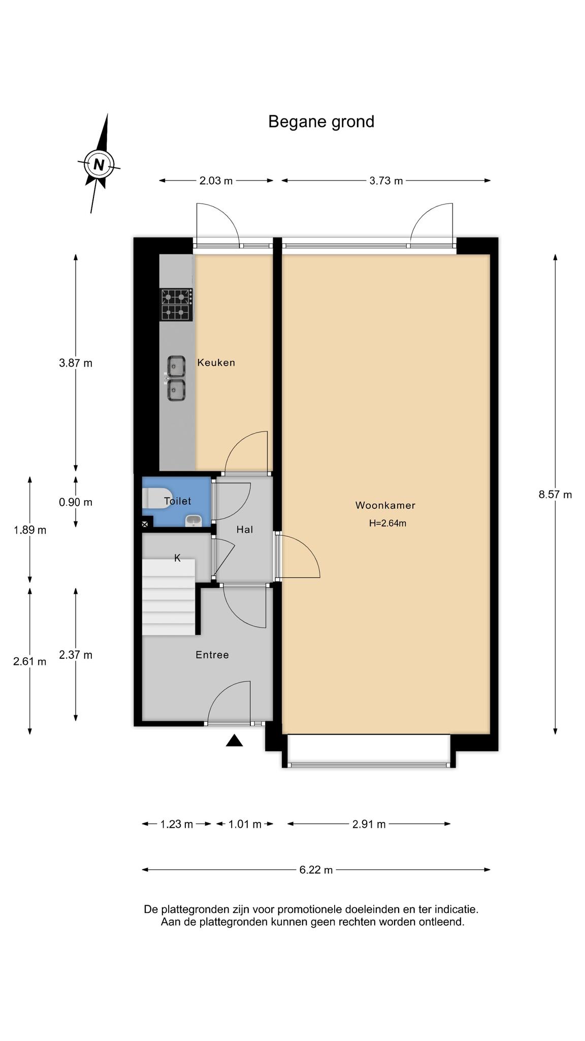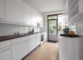 Entree met garderobe / hal met provisieruimte en toilet met fonteintje / een lichte grote woonkamer met toegang tot de tuin / keuken met witgoedaansluiting en eveneens toegang tot de tuin / ruime tuin gelegen op het noorden met stenen berging en een achterom.
