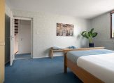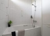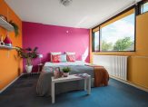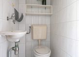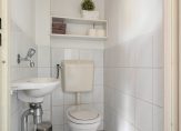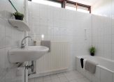 Overloop / drie slaapkamers, waarvan één met vaste wastafel / badkamer met douchebad en een vaste wastafel / apart toilet met fonteintje.
