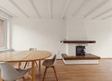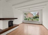 Aan de voorzijde bevindt zich de lichte en sfeervolle woonkamer, met een laminaatvloer en een gezellige open haard als centraal element.