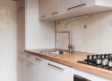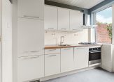 Vervolgens stap je door naar de keuken, die in 2020 volledig is vernieuwd en is voorzien van moderne inbouwapparatuur, waaronder een vaatwasser, koelkast, 4-pits gaskookplaat, oven en afzuigkap.