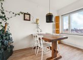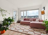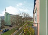 Een goede locatie dus, en het appartement zelf is ook een fijne plek. Het appartement heeft een slaapkamer met balkon, een grote woonkamer met leuke tussendeling en een open keuken met toegang tot het tweede balkon. Kortom, ruimte en lichtinval genoeg! De ligging van de balkons op het noorden en zuiden is ideaal. Door de grote raampartijen (recent vernieuwd door kunststof met HR++) is het een licht appartement. Aan de achterzijde zitten zelfs screens!