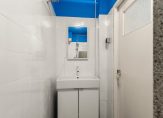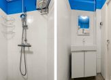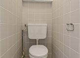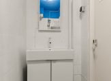 De badkamer is voorzien van een vaste wastafel en een doucheruimte. Het toilet zit apart van de badkamer. In de onderbouw heeft het appartement een eigen aparte berging.
