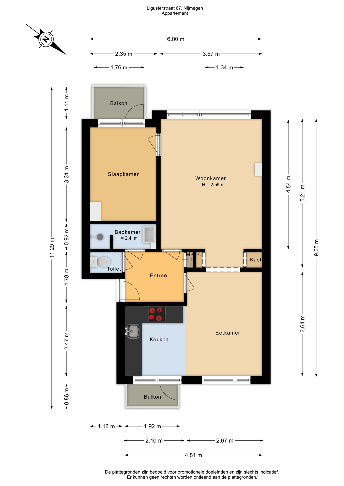 De hal geeft toegang tot alle ruimtes in de woning. Allereerst de lichte woonkamer met zit en eetgedeelte. De slaapkamer aan de achterkant heeft toegang tot het balkon (zuiden). De keuken is vernieuwd en kent alle handige inbouwapparatuur. Zoals boven al geschreven heeft de keuken ook toegang tot het balkon op het noorden.