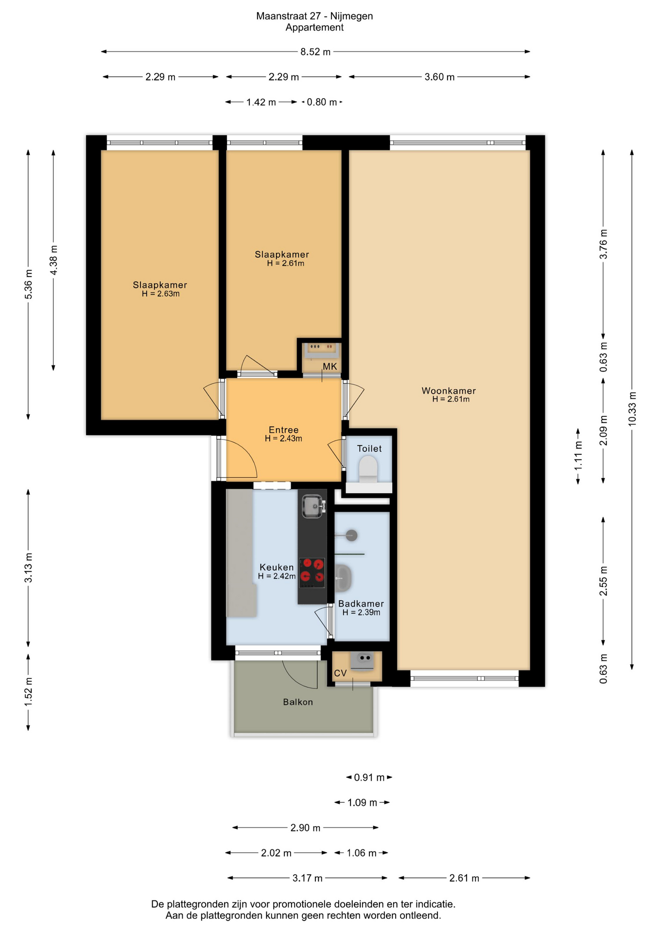 Het balkon is via de keuken bereikbaar en ligt aan de voorkant. De voorkant ligt op het oosten.