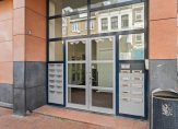 Entree, bellentableau, intercom, brievenbussen, lift en trappenhuis.