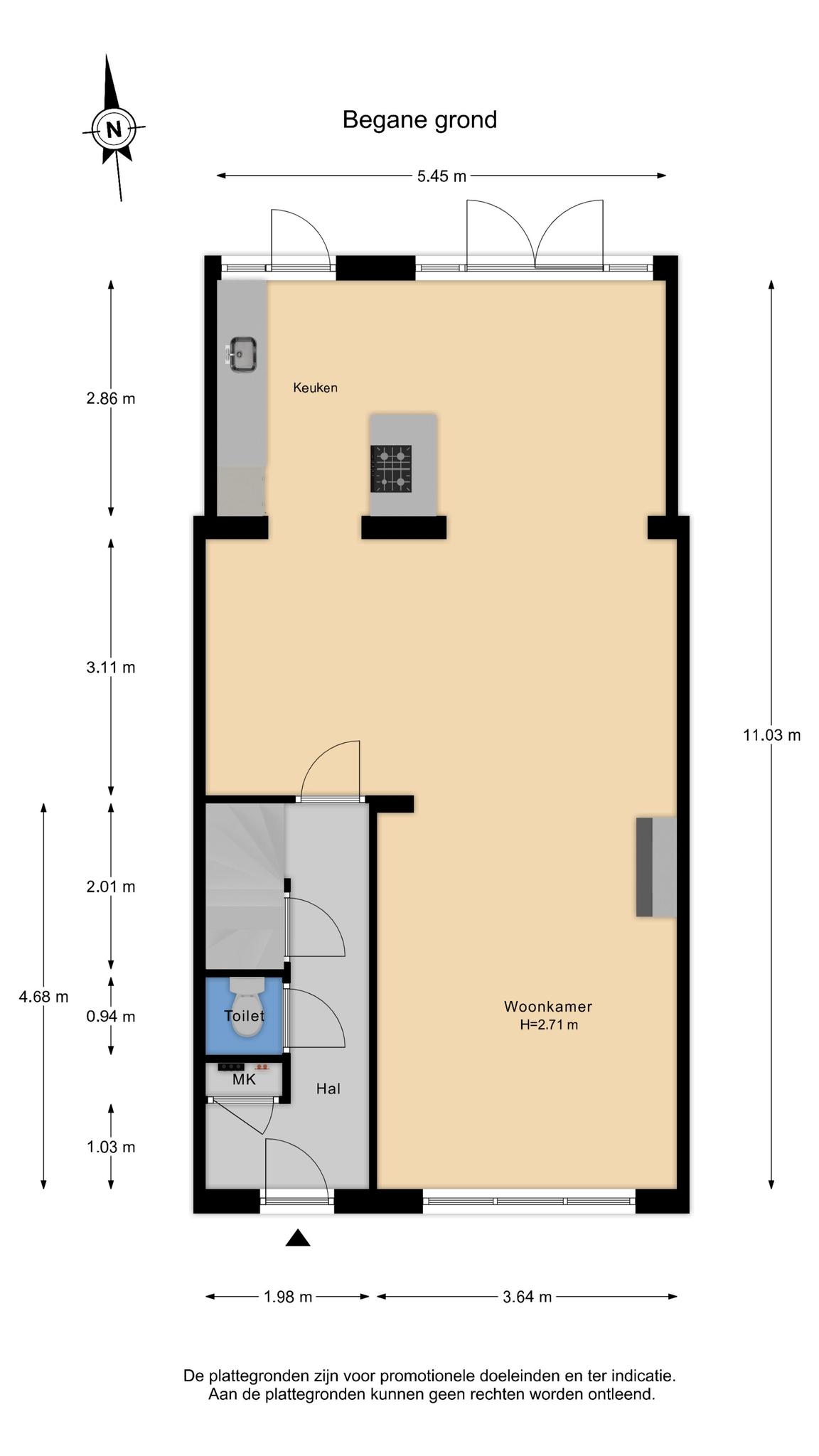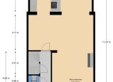 Je betreedt de woning in de hal. Hier bevindt zich de meterkast, het toilet, de trap naar de kelder alsmede de eerste verdieping en de deur naar de woonkamer met open-keuken. De hal is strak afgewerkt en beschikt zelfs nog over de terrazzovloer en betonemaille.