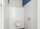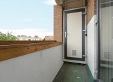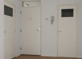 Entree naar het appartement met een ruime hal en een toilet. Aan de achterzijde van het appartement zit de grote slaapkamer met een vaste kast. De tweede slaapkamer bevindt zich aan de voorzijde van het appartement. De badkamer heeft een douche en wastafel. De woonkamer kan worden vergroot door het weghalen van de kastenwand tussen de slaapkamer en de woonkamer. Dan ontstaat er een grote doorzonwoonkamer. De keuken zit tussen de badkamer en de slaapkamer. Het balkon, aan de voorzijde gelegen, ligt op het oosten. De keuken heeft een deur naar het balkon maar ook via de slaapkamer aan de voorzijde is het balkon te bereiken. Het balkon heeft een vaste kast met daarin de cv-ketel.