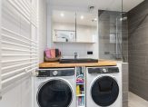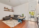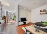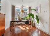 De woning beschikt over veel authentieke elementen, zoals houten vloeren en in de hal de originele vloertegels uit 1907. De lichte en ruime woonkamer heeft hoge plafonds en een open keuken, waar je tijdens het koken in contact blijft met de woonkamer. Aan de voorzijde bevindt zich het eetgedeelte en er is een aparte badkamer. Er is nu één slaapkamer, maar in het souterrain is eenvoudig een tweede slaapkamer of werkruimte te realiseren – ideaal voor thuiswerken of logees.