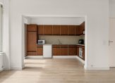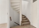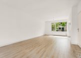 Bij binnenkomst in de woning kom je in de hal met toegang tot het toilet en de trap naar boven. Vanuit de hal loop je door naar de lichte woonkamer, die zich uitstrekt over de volledige breedte van het huis. De grote raampartijen zorgen hier voor veel natuurlijk licht.