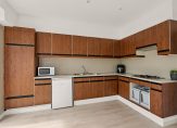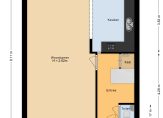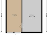 Aan de achterzijde bevindt zich de open keuken, voorzien van een keukenblok met afzuigkap, koelkast in combinatie met vrieskast en voldoende werk- en opbergruimte. Een handige bergkast bevindt zich direct naast de keuken. In de achtertuin bevindt zich een vrijstaande stenen garage, direct bereikbaar vanuit de tuin. Deze biedt extra ruimte voor het stallen van fietsen, een auto of kan dienen als hobby- of opslagruimte.