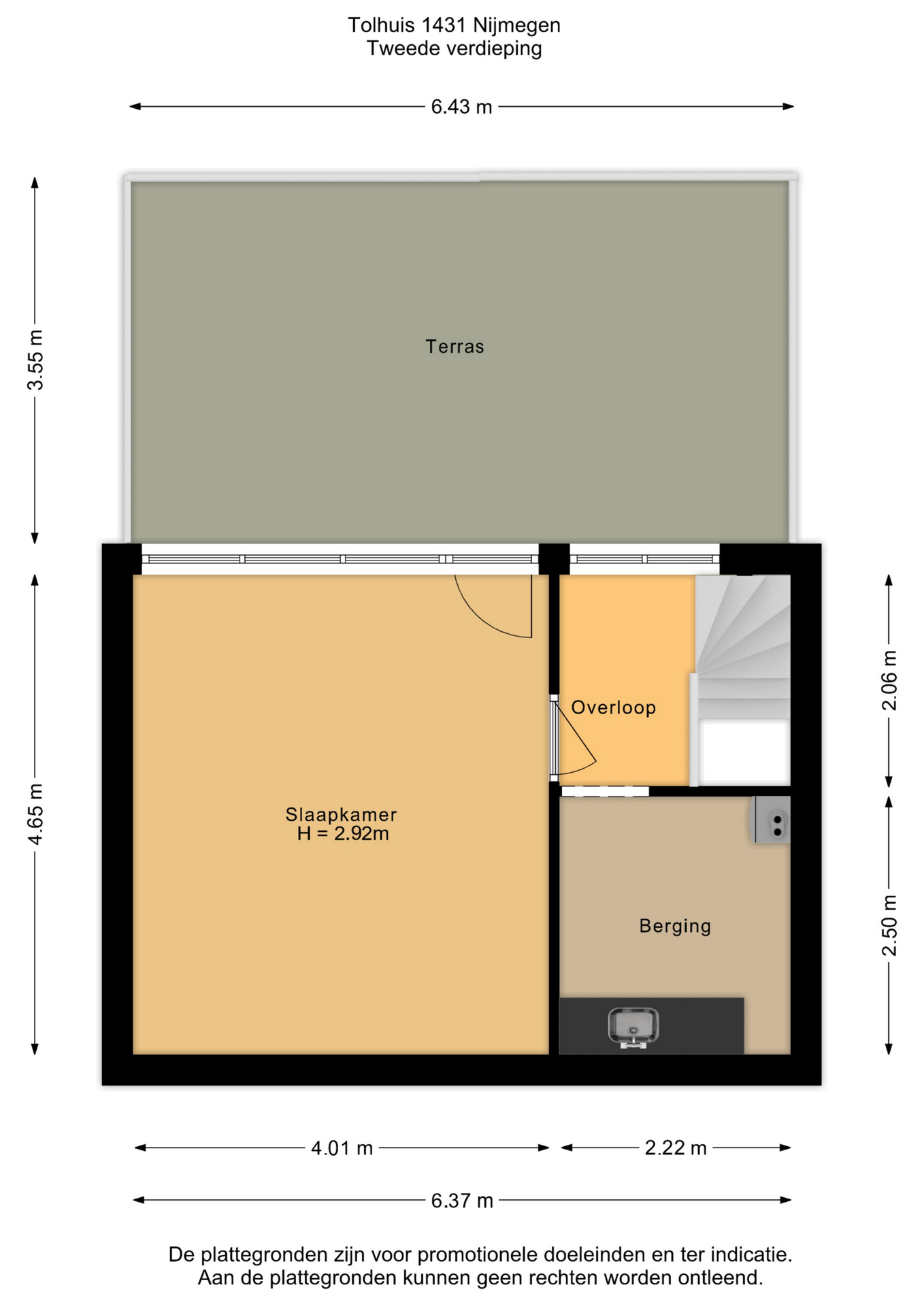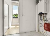 Op de tweede verdieping kom je via de overloop in een royale vierde slaapkamer met een plafondhoogte van bijna 3 meter. Deze kamer biedt toegang tot een ruim en zonnig dakterras, ideaal voor ontspanning. Daarnaast is er op deze verdieping een ruime berging.