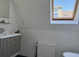 Het appartement heeft een fijne hoogte en meerdere dakramen voor extra licht en ventilatie. Aan de voorzijde zit er een dakkapelletje met een raam waar je leuk over de Bisschop Hamerstraat wegkijkt. Het appartement heeft in de woonkamer een nette open keuken met inbouwapparatuur zoals een inductiekookplaat, combimagnetron, vaatwasser, koelkast met vriesvak en een afzuigkap.