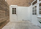 Verderop in de gang ligt de ruime slaapkamer (ca. 15 m²), die eveneens toegang biedt tot de achtertuin.
