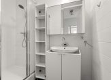 Het appartement heeft een centrale entree met trapopgang. Vanuit de trap bereik je de meterkast en de toegang tot de gezamenlijke buitenruimte. Via de galerij loop je vervolgens richting de voordeur van het appartement. Je komt dan binnen in de gang, met toegang tot de ruime slaapkamer, badkamer, toilet en de woonkamer met open keuken.