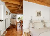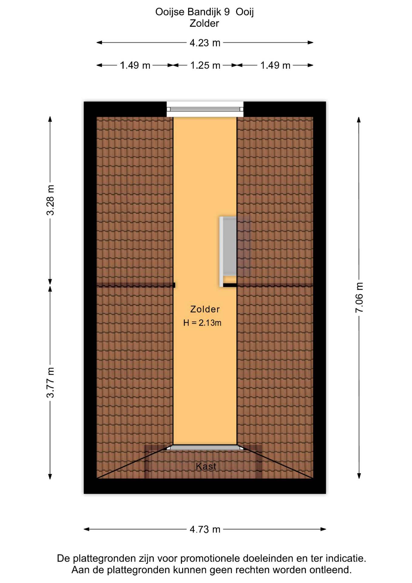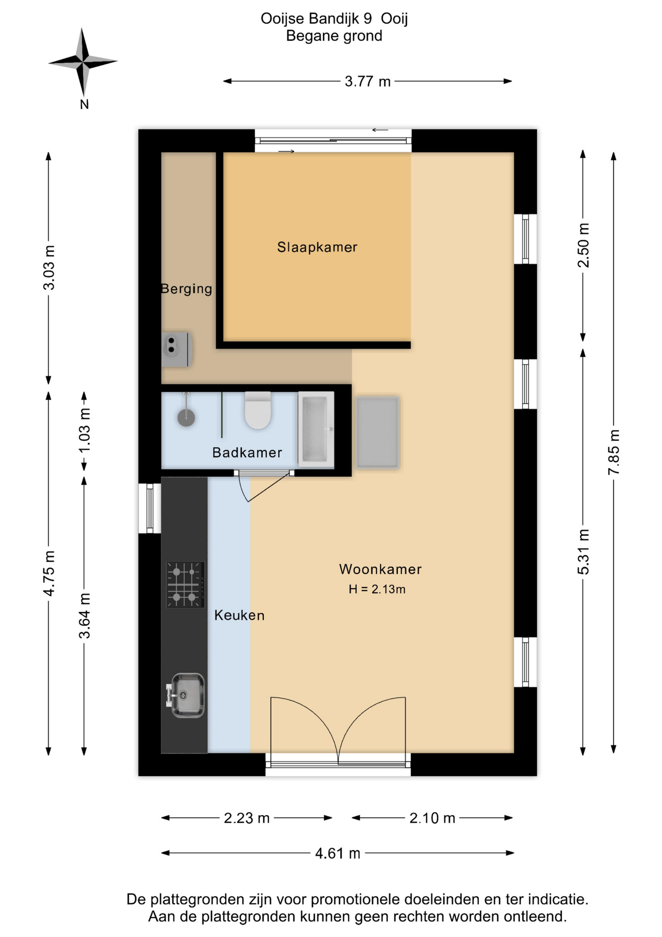 entree / dubbele deuren met uitzicht / woonkamer met open keuken voorzien van 4-pits gas, koelkast, afzuigkap / badkamer met douche, wastafel en toilet / vaste kast met cv-ketel / slaapkamer / vlizotrap naar bergzolder met eventueel een extra slaapkamer