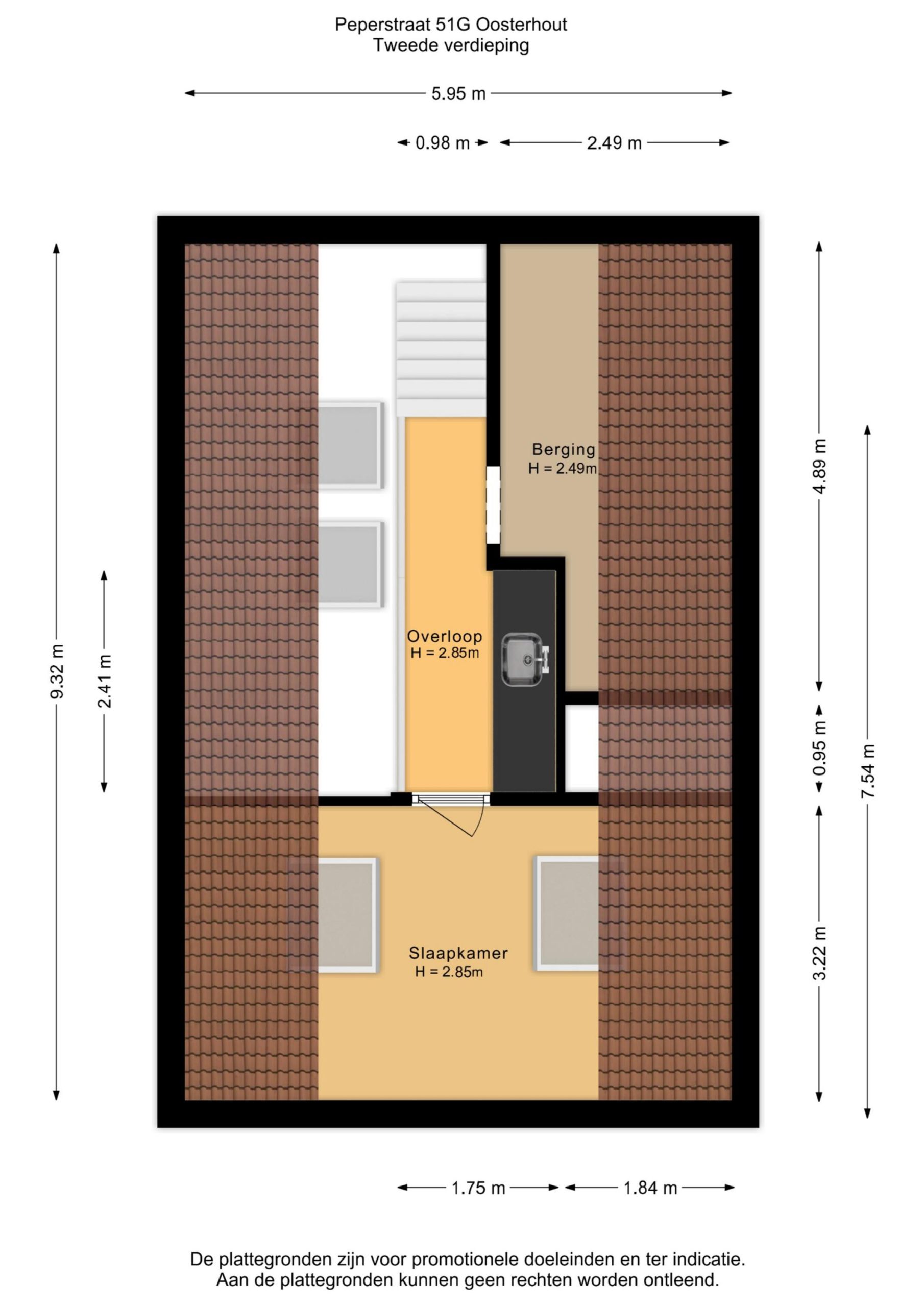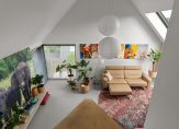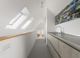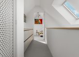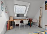 Via een vaste trap bereik je de tweede verdieping, met bergzolder, pantry en een derde slaapkamer. Zowel de overloop als de slaapkamer zijn voorzien van Velux-ramen.