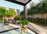 De tuin is volledig omheind, biedt optimale privacy en is bereikbaar via de berging en een zijpoort. Aan de tuinzijde van de berging bevindt zich een royale overkapping, perfect om in de ochtendzon te genieten van een kop koffie.