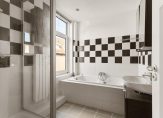 De slaapkamer ligt aan de voorzijde en heeft een goed formaat. Er kan gemakkelijk een tweepersoonsbed en een kast staan. Via de slaapkamer kom je in de badkamer. De badkamer is ruim en heeft een raam wat veel licht geeft maar ook goed is voor de ventilatie. De badkamer kent verder een wastafel, (bubbel) ligbad en douche.